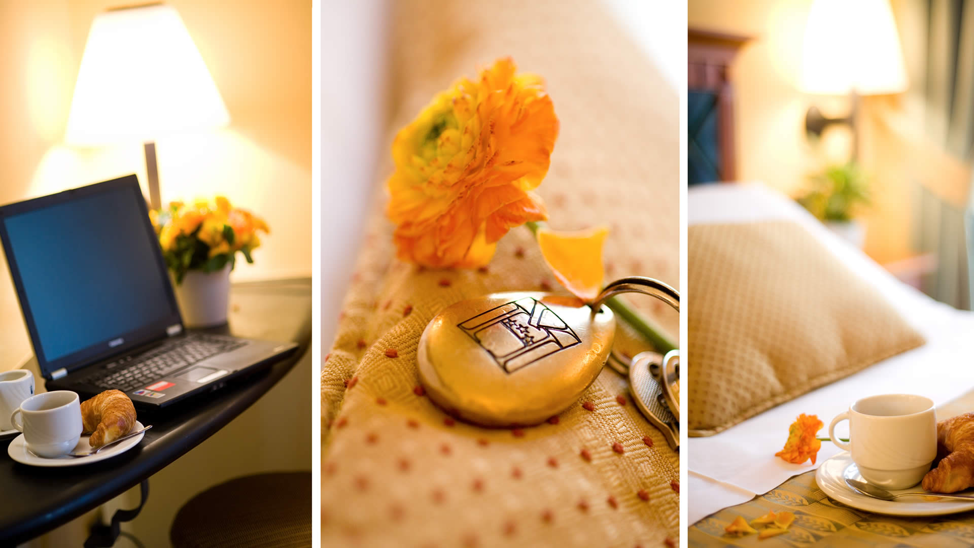 La camera, di circa 16–20 mq, è situata sul lato interno ed è dotata di finestra. Dispone di serratura elettronica, TV LCD con collegamento satellitare e FREE SKY, riscaldamento e aria condizionata a controllo individuale, minibar, cassaforte e connessione Wi-Fi gratuita.