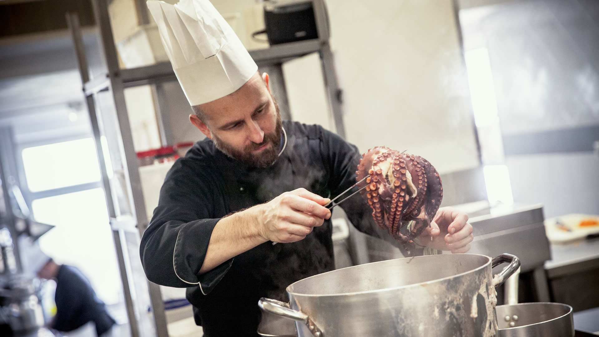 Tra le sue mani i protagonisti sono i prodotti del territorio, lavorati con un sapiente gioco di attenzione alla qualità di materie prime selezionate e sulla finezza degli accostamenti dei colori.